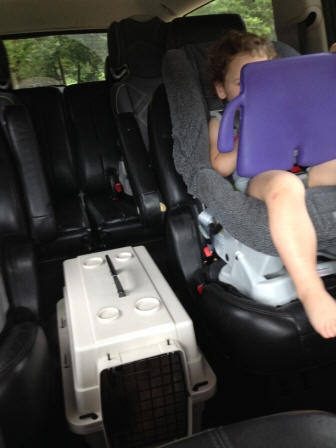 This is how we roll for showings...kids/dog/mom in the car down the street