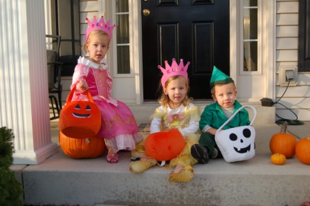 Perry as Sleeping Beauty, Ella as Belle, and Luca as Peter Pan