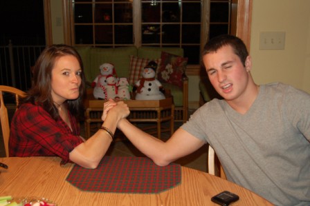 Courtney beating Zach at arm wrestling