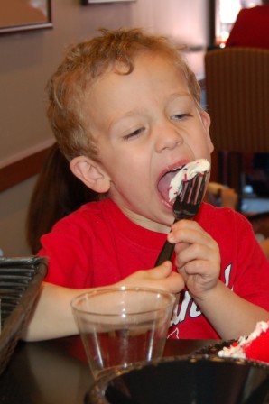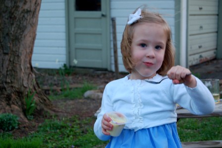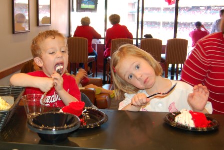 Grandma Deb feeding Noel some pudding...Papa Steve trying to feed Ella some pudding