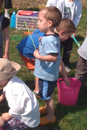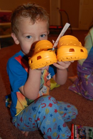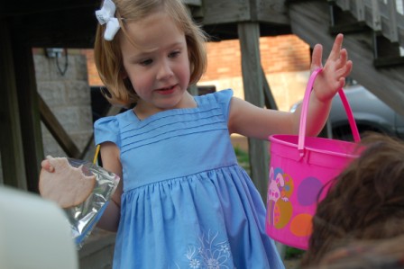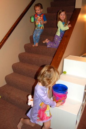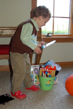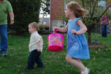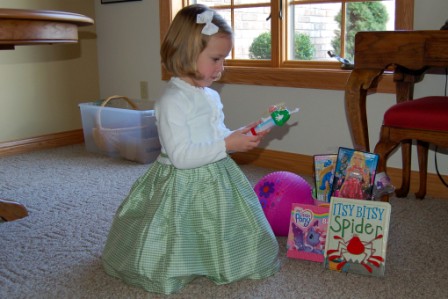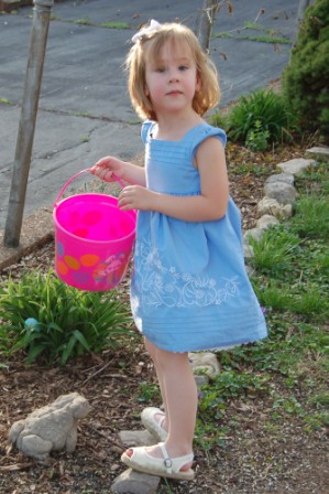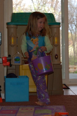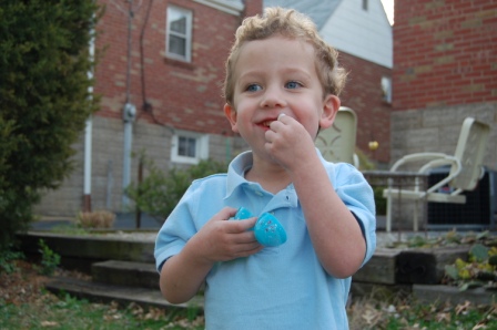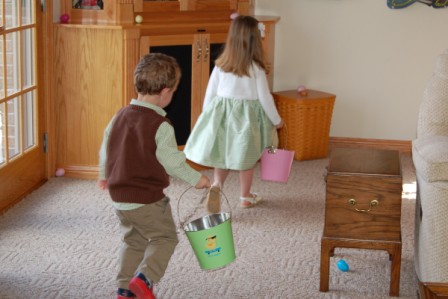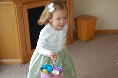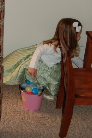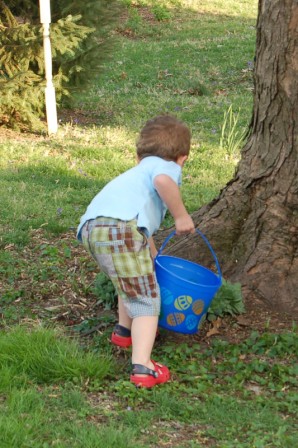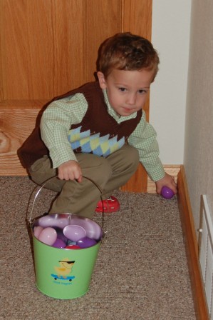 Someone snuck downstairs before everyone else and hunted some eggs and got into his basket