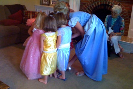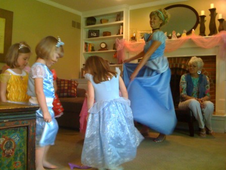 Doing the Princess Pokey...you put your right slipper in, you put your right slipper out