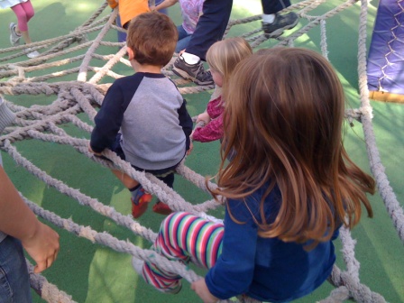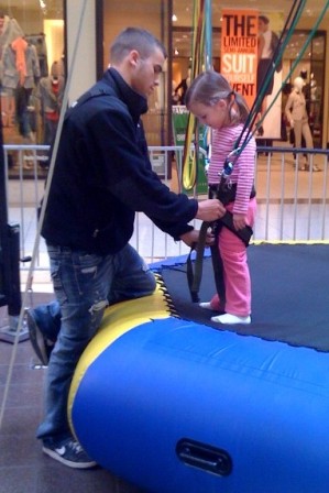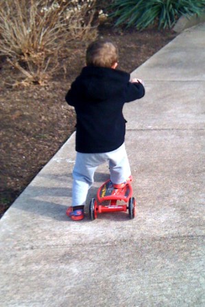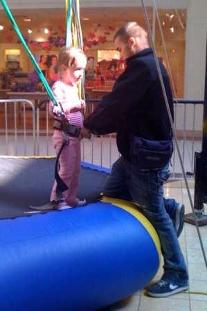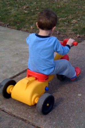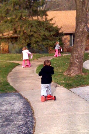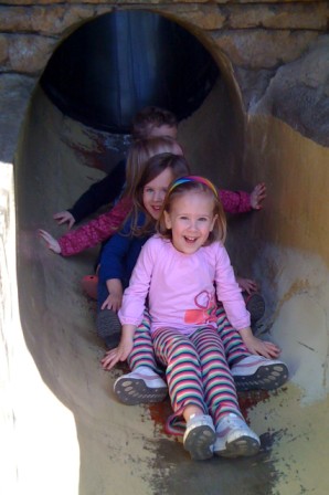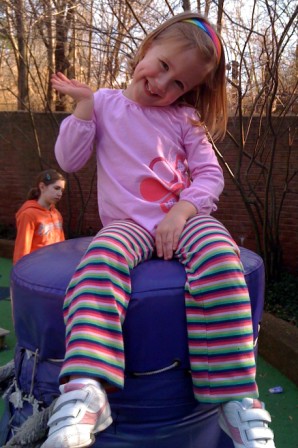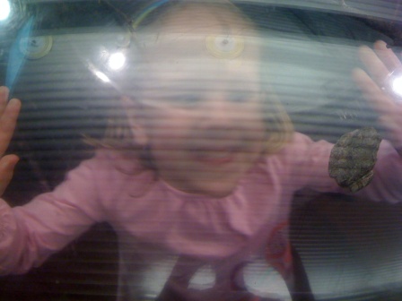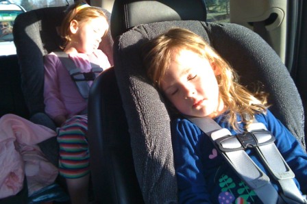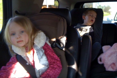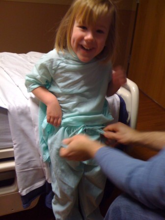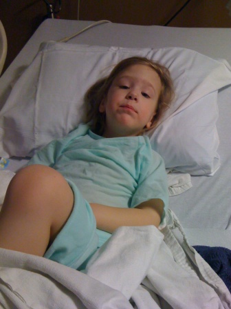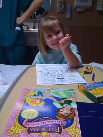 Getting wheeled off in a wagon...sleepy girl after the surgery
