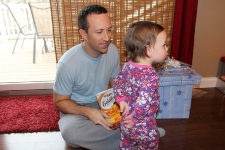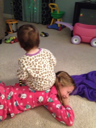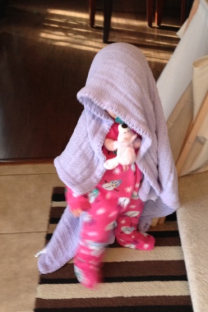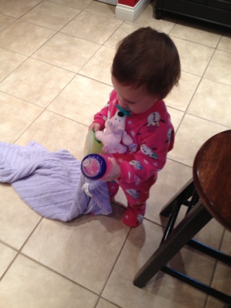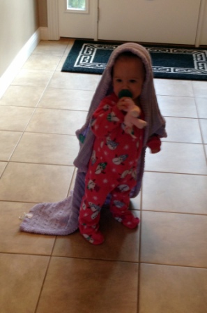 Baby likes to bring her blanky and paci downstairs after nap...or maybe she's getting in the Christmas spirit as the Blessed Mary