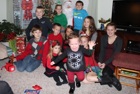 Perry and Ella singing with their Daisy/Girl Scout friends