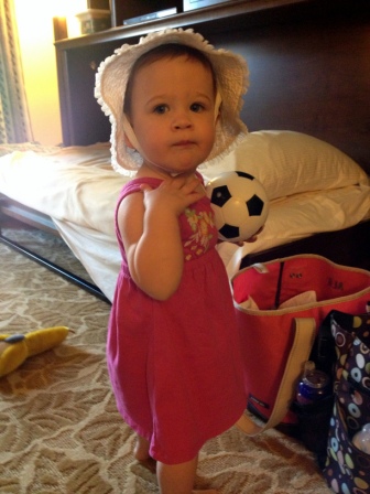 Checking to make sure our carry on luggage fits...Perry playing on Grandma's phone