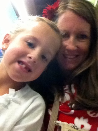 Perry with her afro on and the giant cupcake we got at Mama's Snack Stop