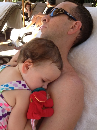 Ella and I in front of Aulani Resort on our way to the grocery store