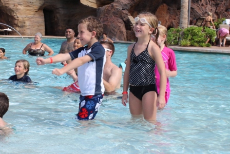 Perry and Ella doing the birthday dance with Goofy and Aunty