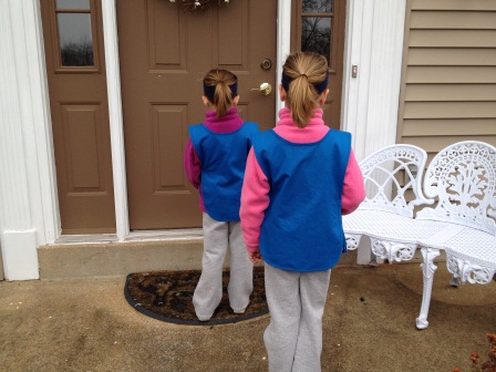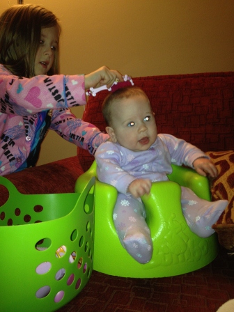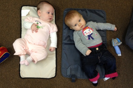Carly and Alaina hanging out while their big sisters do gymnastics
