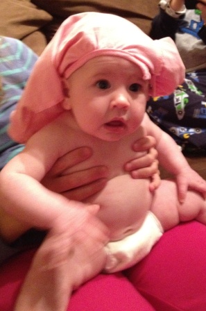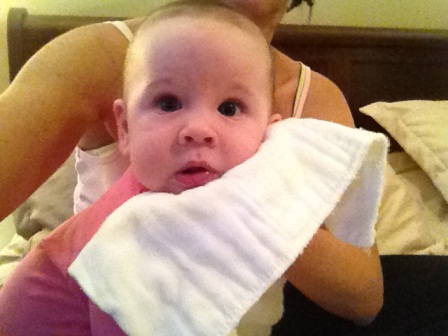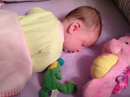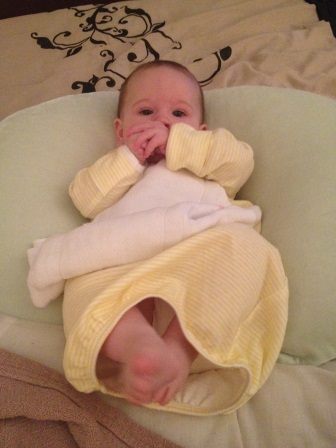 Donning the sleep sack...she had a fever this day