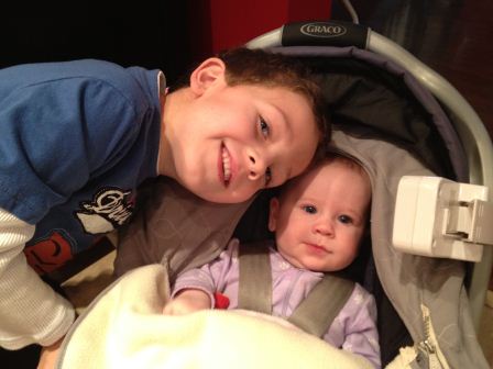 Picture with big bro...moments later, you can see we had a wardrobe change thanks to spit up