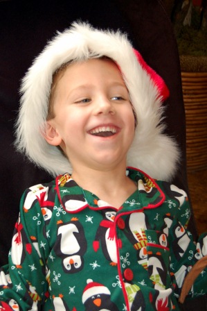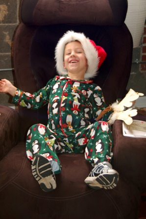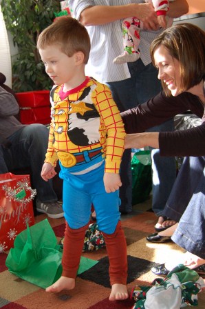 Noel trying on his Woody pajamas...Madelyn trying out the stool