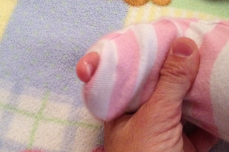 Carly has busted out the toes of more jammies than the other 3 kids combined!