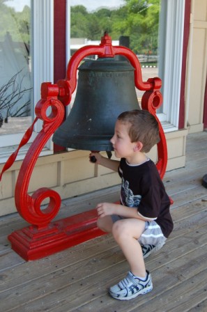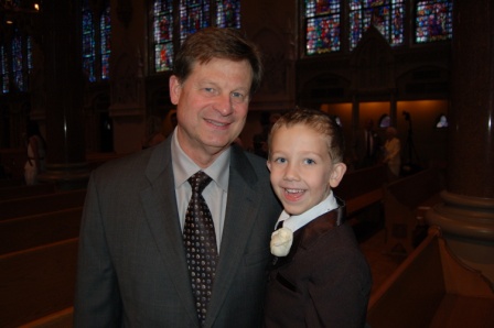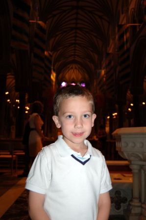 Daddy and Luca trying to see...Mr Wynn on the trumpet
