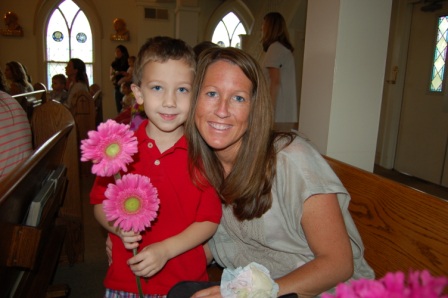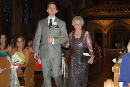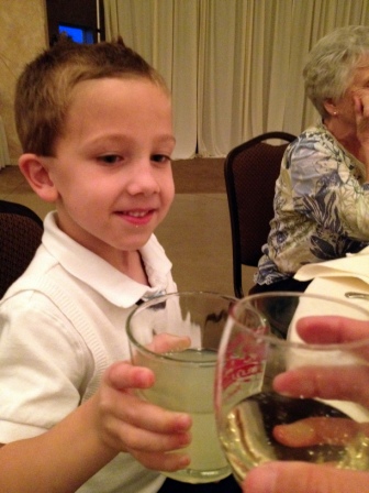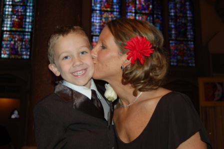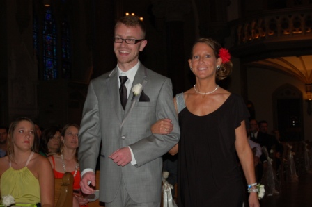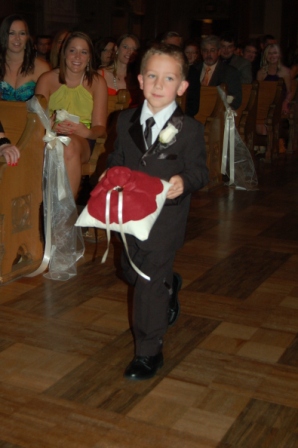 Tyler and Mommy walking into the reception...Luca and the flower girl walking in