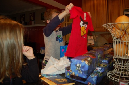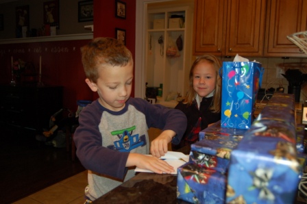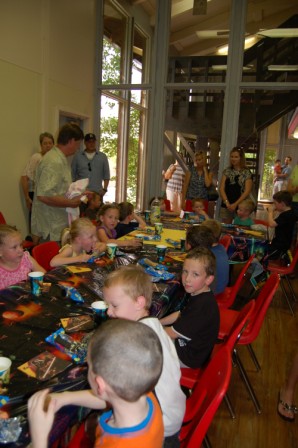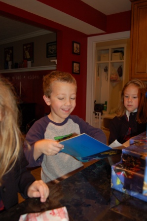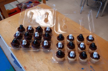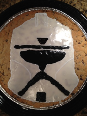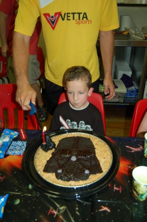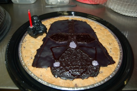 Enjoying the Star Wars Pez, fruit snacks, and cookie cake