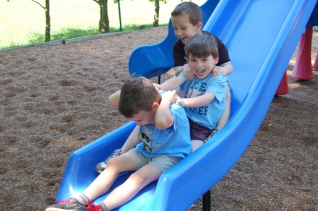 Figured out a way to run with all 4 kids...meet a friend and her kids up at the track and let them entertain each other while we run