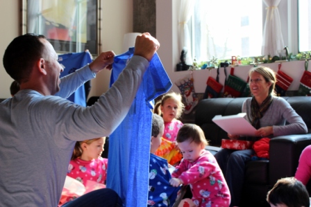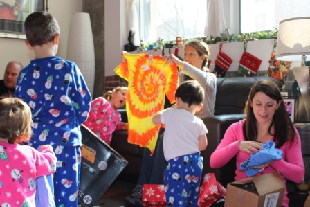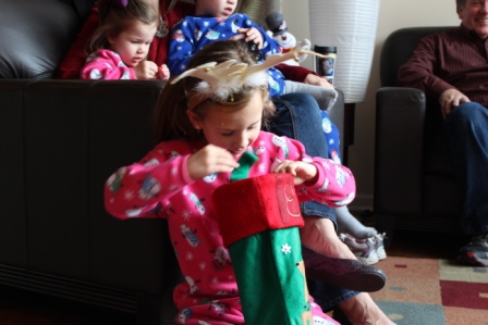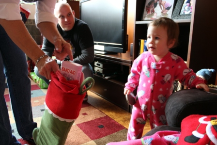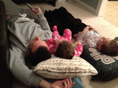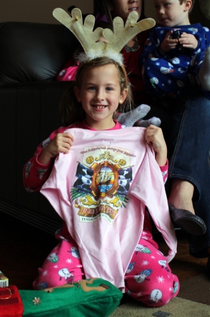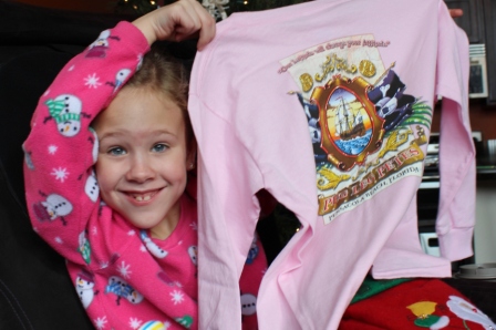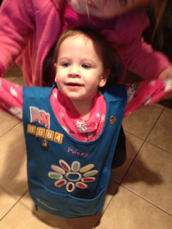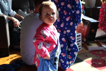 Carly came in for a hug...and then ganked Daddy's shirt!