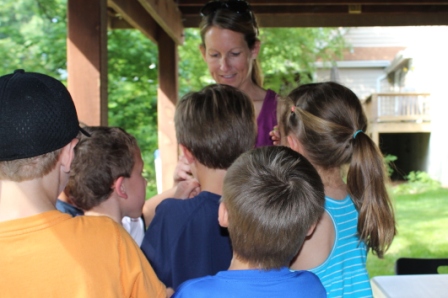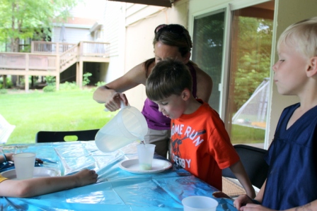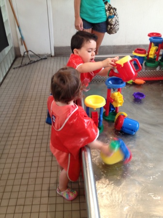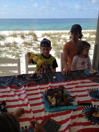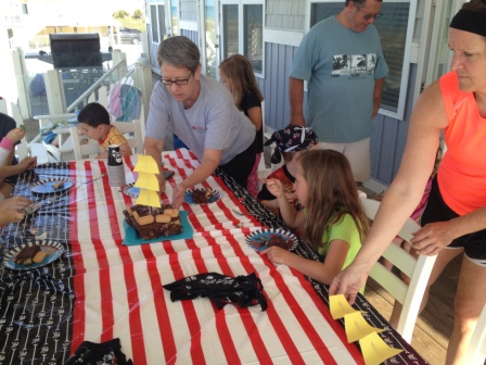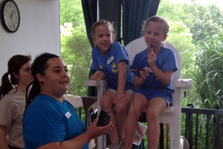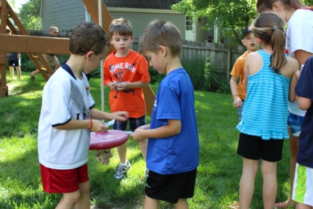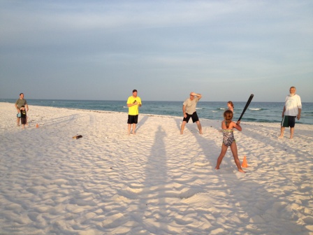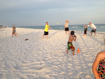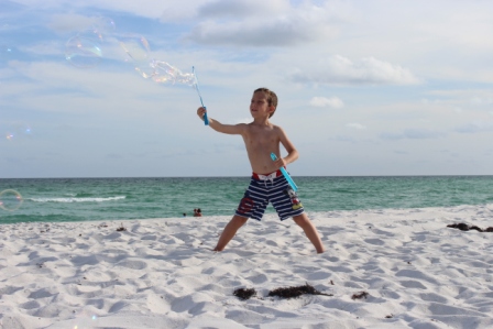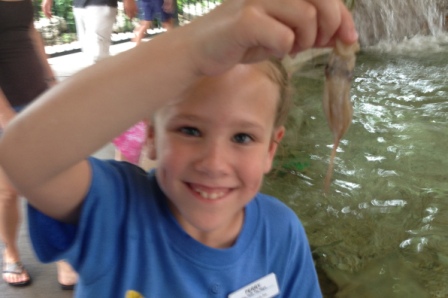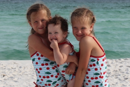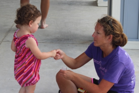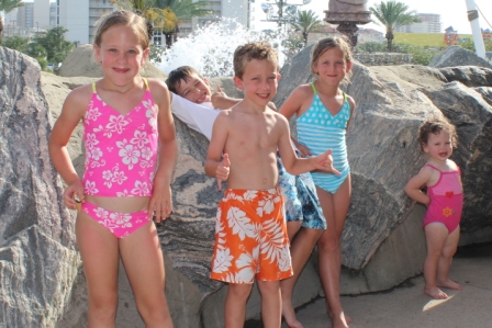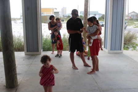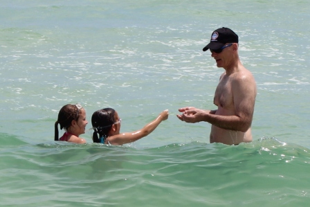 Perry and Ella diving for shells and handing them to Great Uncle Chris