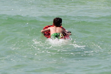 Hanging out in the ocean...salt water/sunscreen/sun in the eyes