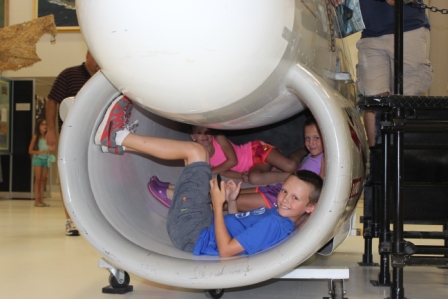 Luca, Jakob, Noel, Perry, Carly, and Ella in the simulator