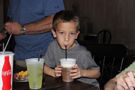 Hard to see, but the 3 bigs rode this crazy log ride at night and got soaked!