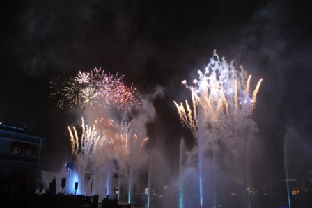 There was a screen of water that the show was projected on, but because it was so windy, it was hard to see it